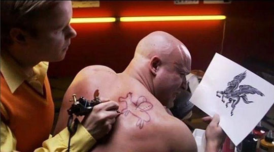 I'd like to see the face of this guy when he's done and he looks at his back in the mirror.