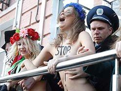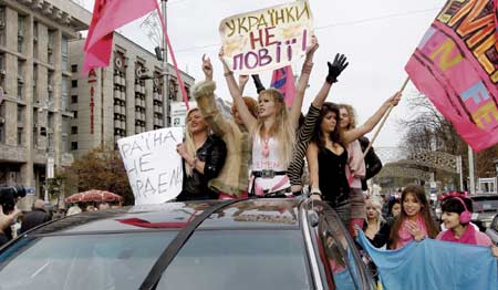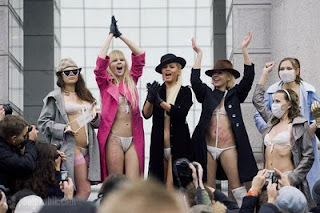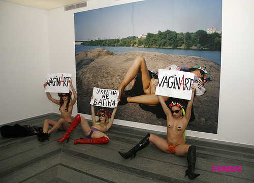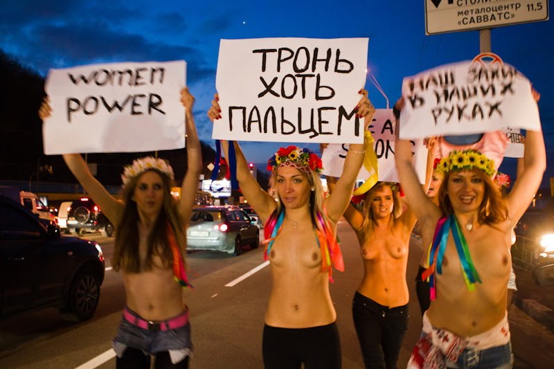 The feminist political activism organization in the Ukraine, Femen stages street protests against everything from sex tourism to Silvio Berlusconi. These protests are almost always topless. Solidarity. Get these ladies to Wall Street! Now!